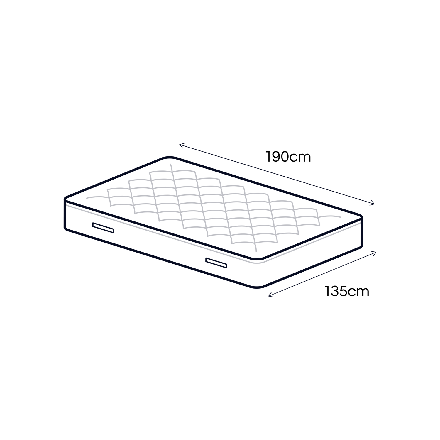 Double mattresses measure 135cm wide and 190cm long (4'6" wide and 6'3" long). The most popular size, the double, is ideal for couples as well as individuals who like some extra space. Not excessively large, a Double fits in most bedrooms.