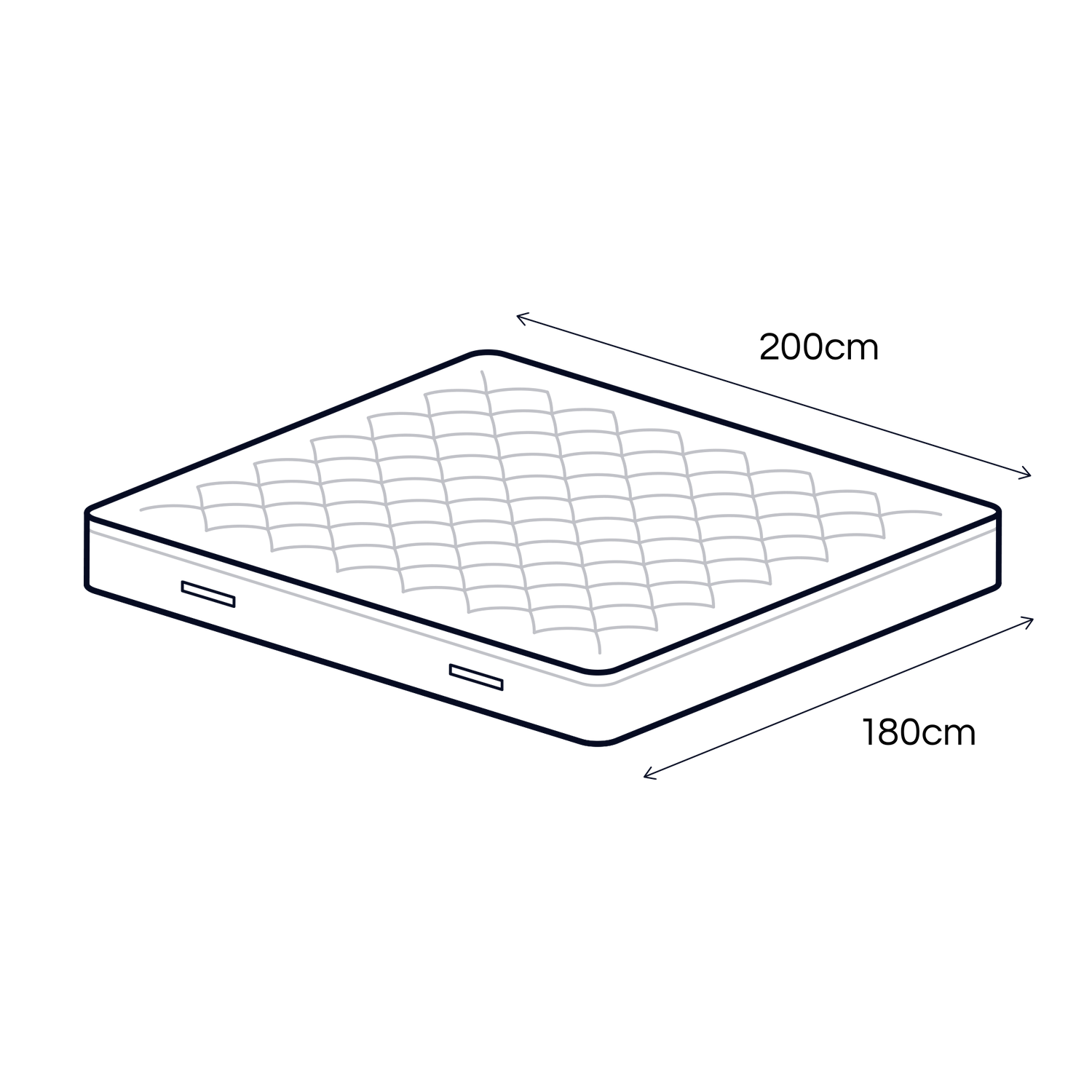 Nuestras camas y colchones super king miden 180 cm de ancho y 200 cm de largo (6'0" de ancho y 6'6" de largo). Nuestro tamaño de cama y colchón más grande disponible, el super king, es perfecto para aquellos que necesitan espacio adicional para dormir.